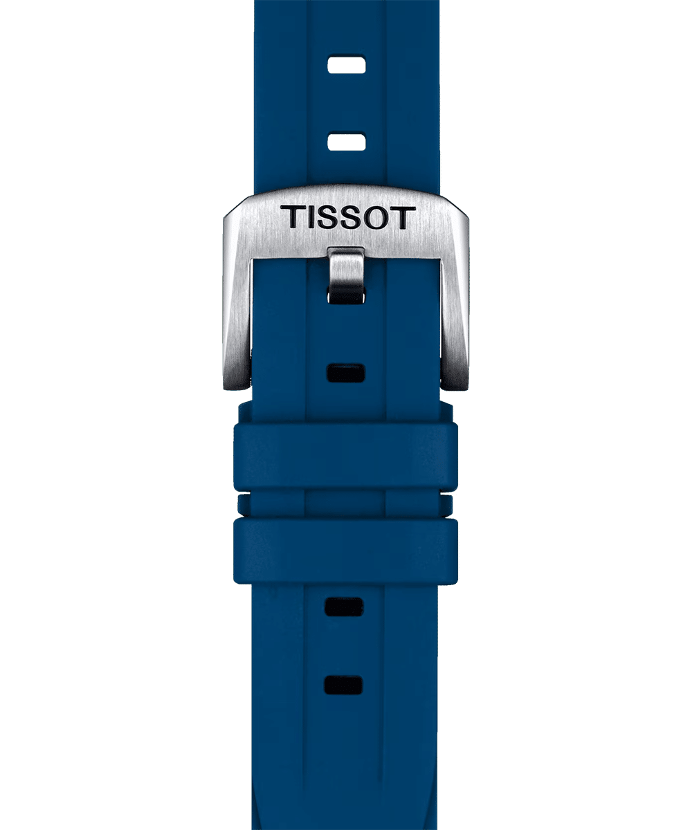 Original blå gummirem med standard spenne. Kompatibel med blant annet Tissot Seastar 1000 Quartz 40MM.