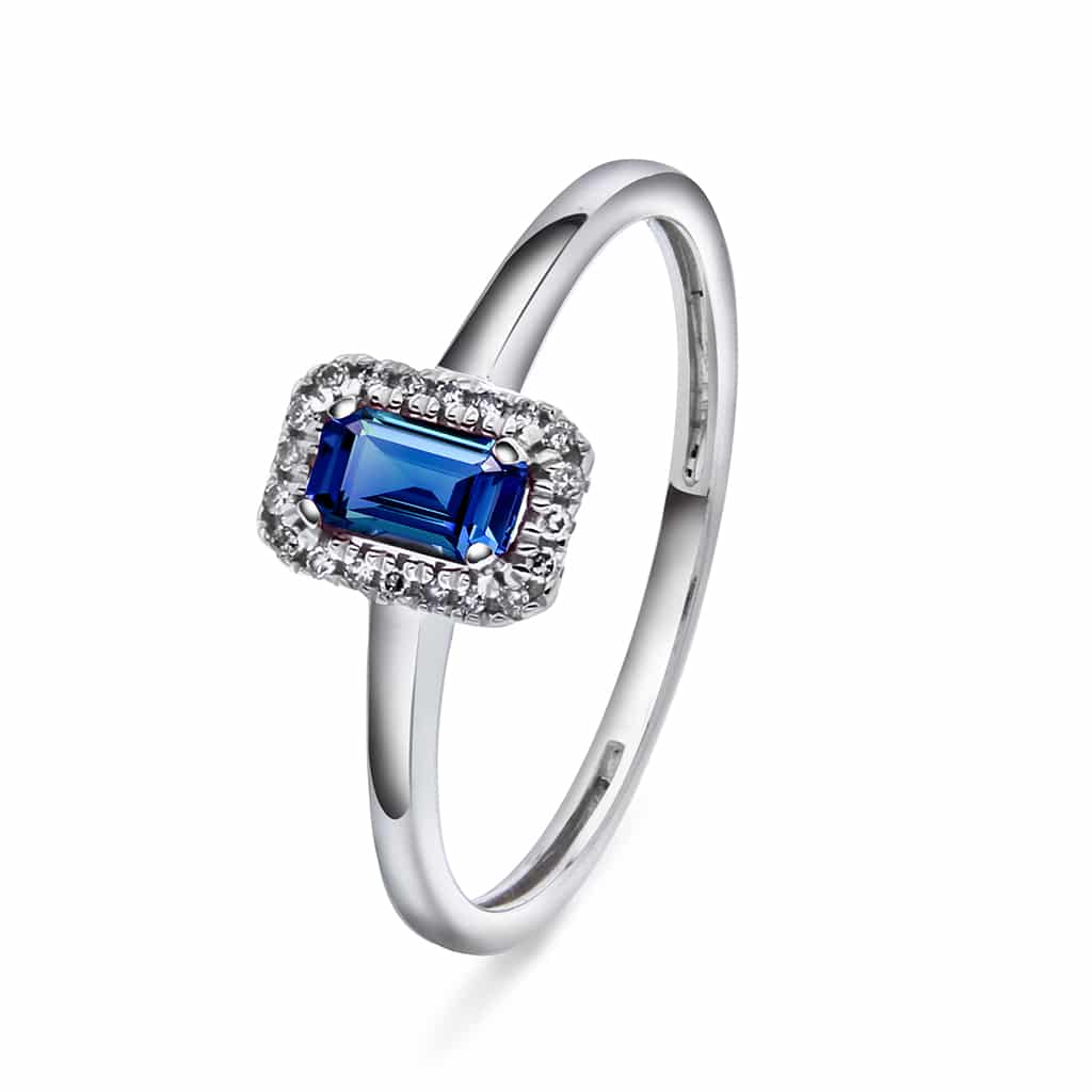 Ring i hvitt gull med diamant og safir 0,05 ct WSI